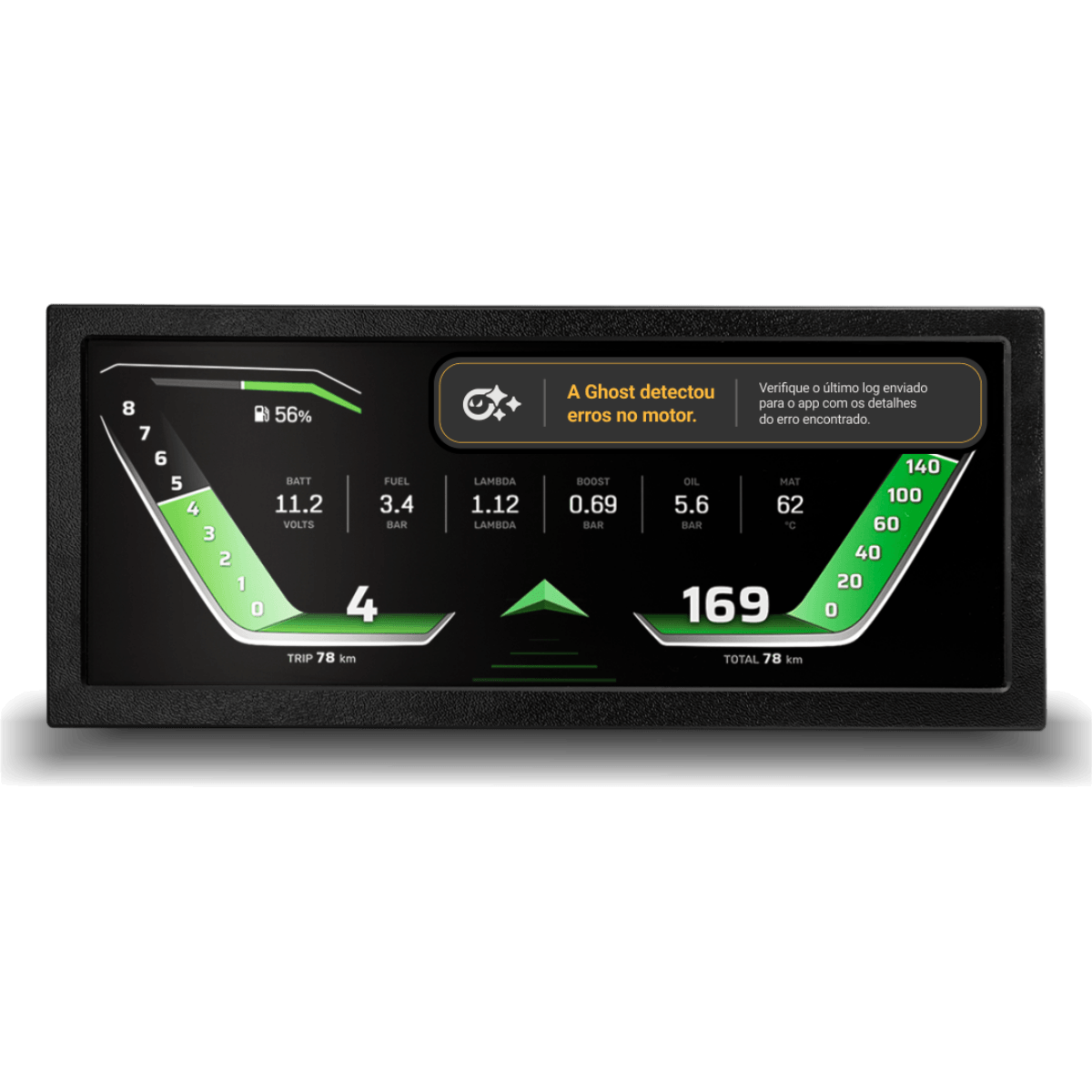 Nosso painel apresenta múltiplas entradas para os sinais do painel original do seu carro, além da capacidade de conexão com uma unidade de controle do motor (ECU ou “injeção”) programável. Essa conexão aprimora as funcionalidades da Ghost, permitindo integrar até 32 canais transmitidos por uma rede de alta velocidade, aumentando significativamente o monitoramento de desempenho e a observabilidade.